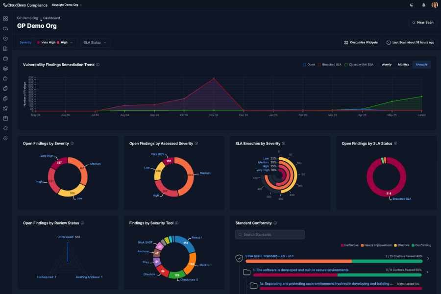 CloudBees Compliance provides real-time compliance and risk analysis throughout the software delivery lifecycle. The platform integrates with existing security tools, translating their findings into actionable intelligence for compliance measurement.